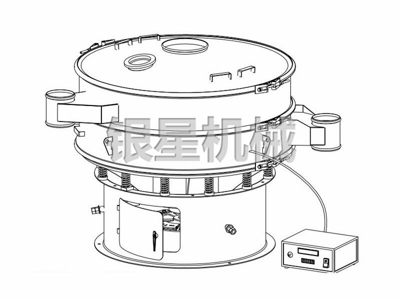 旋振篩的基本回轉(zhuǎn)運動與人工篩分相似,利用380V電動機帶動擺振體來產(chǎn)生三維搖擺作用,三維搖擺使物料在篩網(wǎng)上呈現(xiàn)弧形漸開線搖擺運動軌跡,物料在搖擺運動過程中達到預(yù)期篩分過濾的效果。搖擺旋振篩本身的運動軌跡為橢圓型,每一種產(chǎn)品的停留時間可以調(diào)整擺振體上面的經(jīng)向角和切向角可改變物料在網(wǎng)面上的運動軌跡,偏心率從25到40mm可調(diào),低速V型皮帶驅(qū)動從120到360rpm可隨意調(diào)節(jié)。篩分物料從中心到外緣在篩面上均勻分散是以螺旋運動往軸向傳播形式分散,接近篩孔尺寸的顆粒隨之成功分離;較大不透篩孔顆料被運送到上篩面出口處排出,穿透過篩孔物料降落到下層篩面進行篩分。